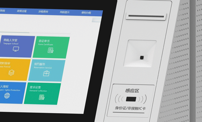Desktop dual-screen self-service terminal, conventional Android system, windows system, customizable modules: receipts, face recognition, two-dimensional code, etc., suitable for smart government reception desk.