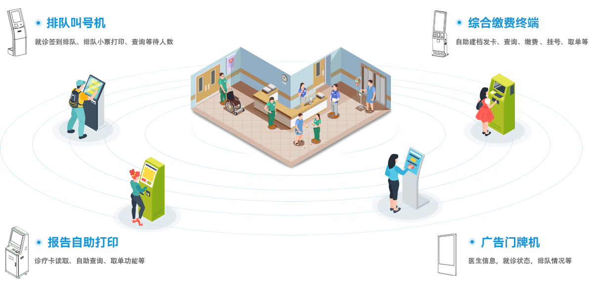 Multiple self-service terminals have been designed according to the size requirements of different scenarios such as hospitals, clinics, and nursing homes