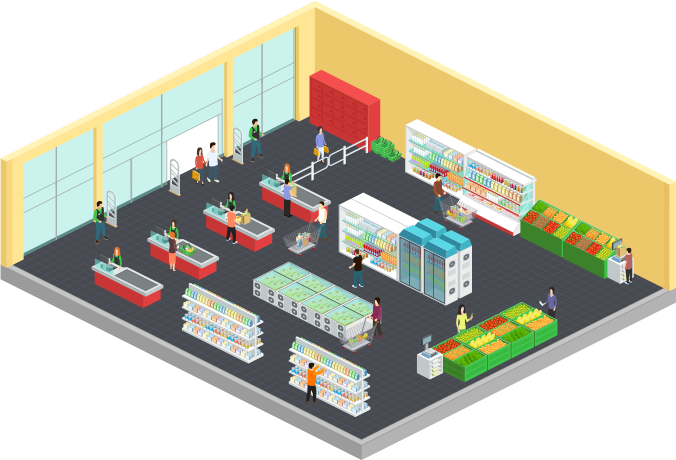 It is mainly used in retail scenes such as supermarkets, convenience stores, and fresh stores. It supports advertising rotation, online payment, self-service coupon printing, and can be configured with lockers