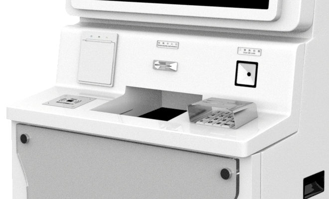 设备主要用于医疗场景的综合自助终端机,用于自助建档发卡、查询、缴费 、挂号等,屏幕采用43寸高清电容屏,美观大气,大小型医院常用款式,支持定制国产化硬件方案。