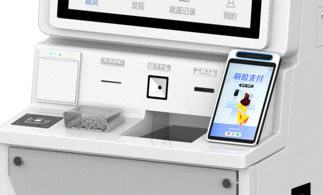 设备主要用于医疗场景的综合自助终端机,用于自助建档发卡、查询、缴费 、挂号等,外观时尚,医院常用款式